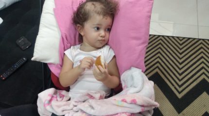 Uma parte óssea do crânio precisou ser retirada durante a cirurgia, então Helena ainda não consegue mexer a cabeça para os dois lados, mas segundo Bruno, considerando a gravidade da situação, a pequena está indo muito bem.