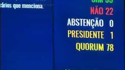 O Senado aprovou hoje, por 55 votos a favor e 22 contra, a admissibilidade do processo de impeachment da presidenta Dilma Rousseff. Com isso, o processo será aberto no Senado e Dilma será afastada do cargo por até 180 dias, a partir da notificação. Os senadores votaram no painel eletrônico. Não houve abstenções. Estavam presentes 78 parlamentares, mas 77 votaram.