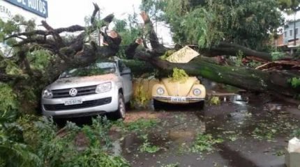 A árvore também caiu em outro veículo que estava estacionado, uma caminhonete. Nele estava uma mulher, moradora da Vila Alemã. Ela saiu com vida e passa bem, segundo informações do marido que havia saído do carro segundos antes da árvore cair.