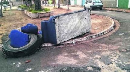 Acordar em um dia tranquilo, ir até a calçada e encontrar um sofá e pneus de caminhão jogados a poucos metros de casa. Lixo que enfeia, emporcalha e deixa a sensação de abandono em uma pequena praça na Avenida 27, entre Ruas 20 e 21, Bairro do Estádio.
