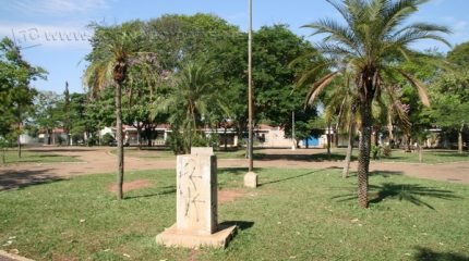 No centro da Praça Plínio Salgado o local onde antes ficava o busto do homenageado está vazio