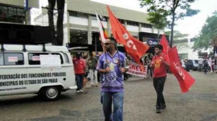 Funcionários municipais e bancários em greve dividem espaço com apoiadores que aguardam Eduardo Suplicy