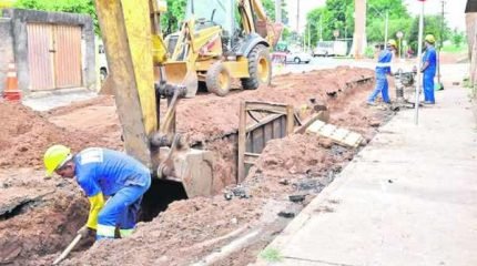 Operários trabalham na construção de adutora no bairro Cidade Nova, em Rio Claro (foto divulgação)