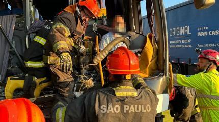 Acidente aconteceu na manhã de segunda-feira (29), na altura do quilômetro 194, na Rodovia Washington Luís, sentido capital; motorista foi resgatado com vida