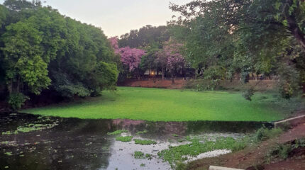 Quem passou pelo Parque Lago Azul nos últimos dez dias conseguiu observar uma mudança no cenário do local. Uma grande vegetação tomou conta de boa parte da margem do lago e tem chamado bastante a atenção. Peixeis mortos também foram registrados, assim como a presença de lixo.