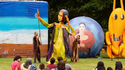 Com grandes bonecos divertidos, estruturas infláveis e passos de dança, elementos presentes em vários de seus espetáculos, a companhia Pia Fraus apresenta importantes obras e artistas do movimento modernista brasileiro. Em cena, cinco atores utilizam diferentes técnicas para manipular os bonecões e falar de Tarsila do Amaral, Di Cavalcanti e Anita Malfatti, entre os pintores, e de músicos como Pixinguinha e Chiquinha Gonzaga.