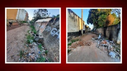 A via, que fica no cruzamento com a Avenida M-29, não possui calçamento e o descarte de lixo e entulho acontece de forma completamente irregular, segundo morador da região que preferiu não se identificar.