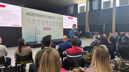 O Centro das Indústrias do Estado de São Paulo (Ciesp) promoveu uma palestra, nessa sexta-feira (30), com o presidente da entidade Rafael Cervone, a respeito das macrotendências da economia mundial até 2040. O encontro aconteceu no Grupo Ginástico e contou com ampla participação. O material apresentado abordou indicadores baseados em cruzamento de mais de 300 bancos de dados do Ciesp e da Fiesp (Federação das Indústrias do Estado de São Paulo). A apresentação foi dividida em nove áreas: saúde, alimentos, energia, infraestrutura, urbanização, perfil do consumidor, trabalho e qualificação, segurança e entretenimento e turismo.