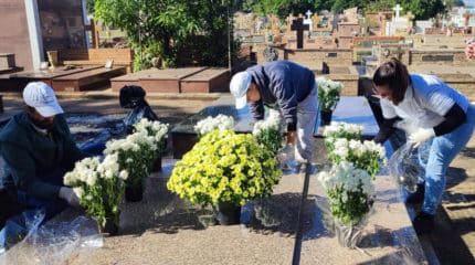 Entre as ações esteve a remoção de embalagens plásticas dos vasos de flores levados pelos visitantes a túmulos no fim de semana, por conta do Dia das Mães.