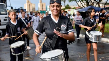“O meu marido que hoje é mestre de bateria veio de São Paulo para Rio Claro e o pai dele falou sobre a Uva e começamos a frequentar, e ele passou a tocar na bateria enquanto eu só acompanhava. Eu engravidei da Heloisa e passei a ficar mais ativa, fui para harmonia dos carros das crianças, ajudava nas fantasias e carros alegóricos. Devido a gente morar fora, nos afastamos um pouco, mas há cinco anos veio o convite para o Danilo ser mestre de bateria, aí mergulhei junto com ele na bateria, assim como a Heloisa, e hoje faço parte da diretoria, além de ser ritmista também”, Jaqueline Luis.