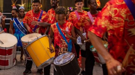 “Minha mãe e irmão tocavam na bateria e eu achava muito bonito e com meu pai presidente eu tinha muito contato com a bateria e escola. Nisso eu ficava muito feliz e conversava com todos na escola. Aí meu primeiro contato com instrumento foi depois de um ensaio, quando comecei a tocar e falei pro meu tio, que é mestre de bateria, que eu gostaria de fazer parte da bateria. Daí com cinco anos comecei a tocar e estou muito feliz em desfilar pela primeira vez como ritmista, é surreal depois de tanto tempo sem o desfile retornar este ano”, diz Ekene Duarte.