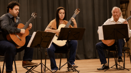 SESI – Violões Artes Trio, formado por Pedro Cameron, Priscila Giusti e Welton Nadai leva gratuitamente às cidades do interior paulista um espetáculo com belíssimas transcrições para trio de violões de uma seleção de peças de compositores que são referência nas salas de concerto de todo o mundo. A apresentação acontece no Sesi, a partir das 18 horas, na Avenida M-29, 441, no Jardim Floridiana.