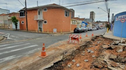 O cruzamento da Rua 3 com a Avenida 9, no Centro de Rio Claro, está interditado para a realização de obras de suavização de valetas que a prefeitura realiza no local. Os motoristas devem redobrar a atenção ao transitarem pelas imediações.