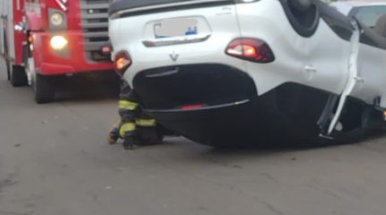 Na tarde desta quarta-feira (14), por volta das 15h30, o Corpo de Bombeiros atendeu a uma ocorrência de um capotamento pelo Jardim Brasília. Para o local, na Rua 18, se deslocaram profissionais nas viaturas do Resgate e Autobomba que constataram que o motorista estava preso, com o cinto de segurança, dentro do automóvel.