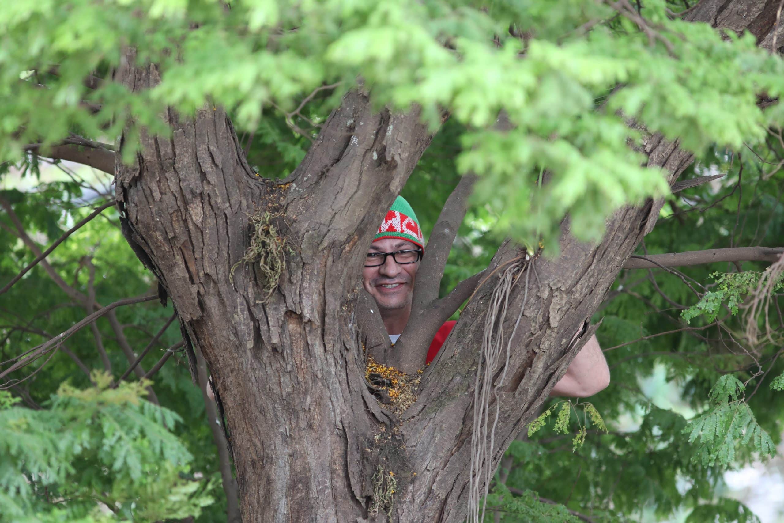 Murilo vê o jogo de uma árvore atrás do Benitão. Foto: Gustavo Amorim