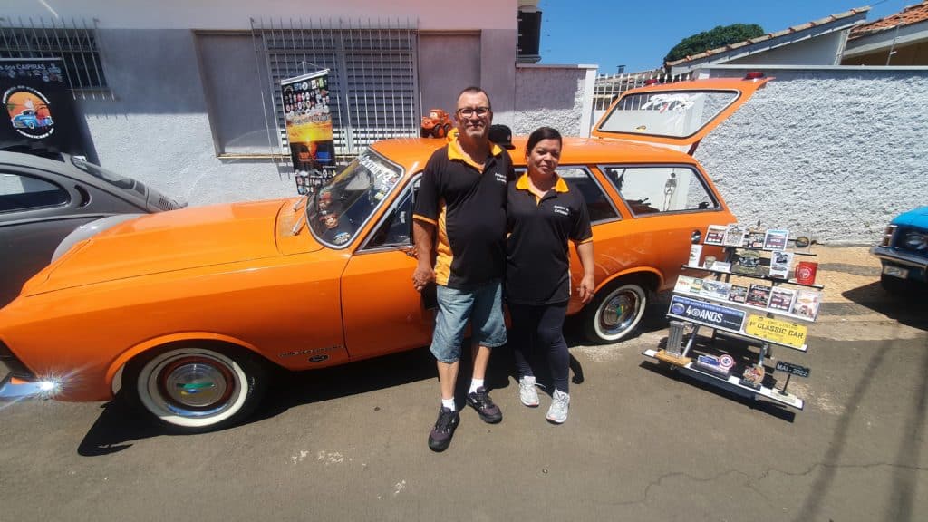 O carro a princípio foi comprado para tirar peças, mas Patropi descobriu que a Caravan estava melhor que o carro que ele já tinha então começou a montar a Caravan laranja e deixá-la o mais original possível “ela está com motor 4cc original, as rodas e calotas originais, os bancos são originais, mas a costura é diferenciada, painel, velocímetro está tudo dentro da originalidade só a cor que não é o original do modelo dela foi alterada pela cor de um carro mais novo, o restante tudo original,” esclarece.