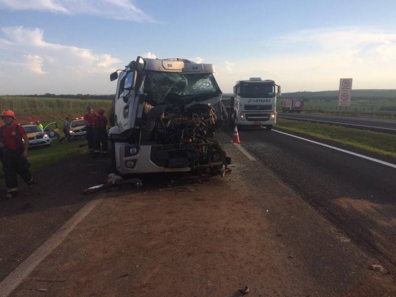 A cabine de um dos veículos ficou completamente destruída com o impacto, o que resultou na morte de um dos condutores que ficou preso às ferragens.