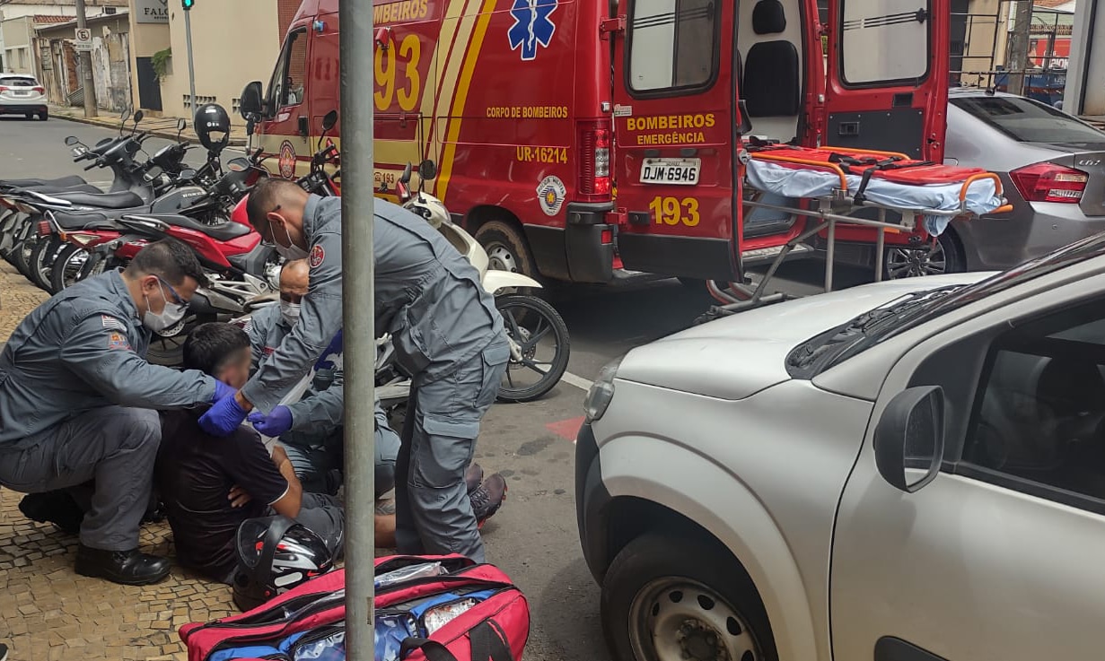 Um acidente envolvendo três veículos ocorreu em frente a sede do Grupo JC, em Rio Claro, na manhã desta quinta-feira (2), quando um motorista que estava estacionado na Avenida 5, ao sair da vaga, bateu em um motociclista que fazia entrega por aplicativo, próximo ao semáforo do cruzamento com a Rua 4. Com o impacto da colisão, o rapaz da moto foi jogado em direção a outro veículo que estava parado no sinal vermelho.