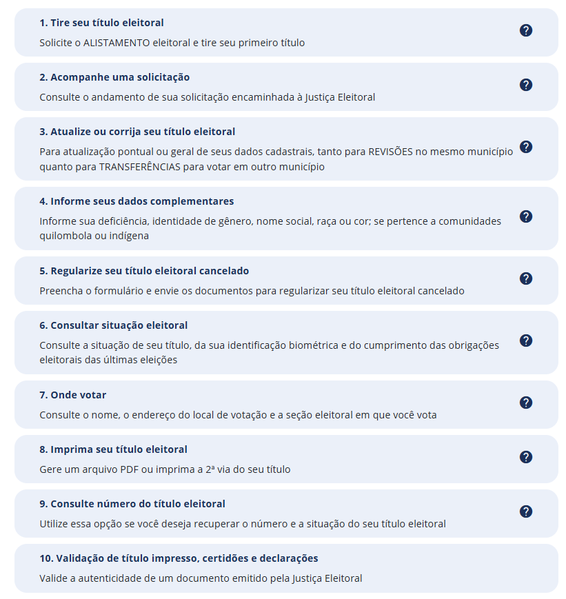 A transferência do título de eleitor também pode ser feita pelo Autoatendimento. Este serviço é específico para quem mudou de cidade e deseja votar no novo município de residência.