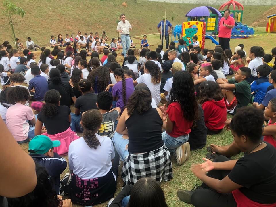 A atividade fez parte das comemorações do Dia da Árvore e reuniu alunos do matinal e diurno. As crianças conversaram com o ecólogo Antônio Tadeu Olivetti, do Departamento de Silvicultura da Secretaria Municipal de Agricultura, que destacou a importância das árvores no meio ambiente. Tadeu respondeu a perguntas dos alunos.