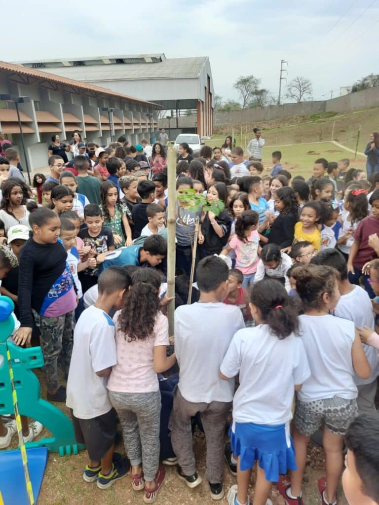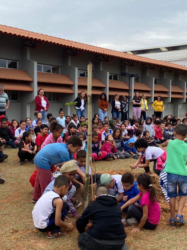 Alunos da Escola Municipal Prof. Octávio José Chiossi, na região sul de Rio Claro, realizaram na quarta-feira (21) o plantio de 28 mudas de árvores em área verde no interior da escola.