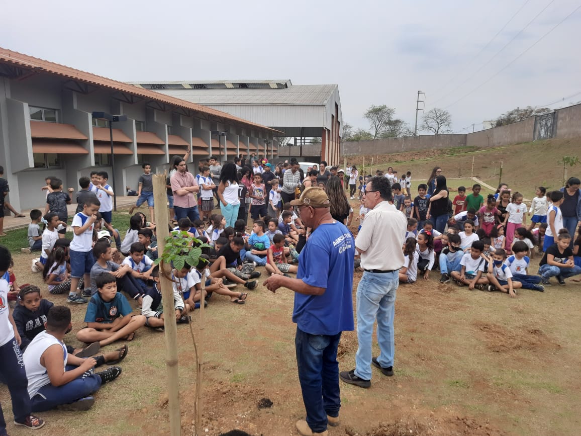Alunos da Escola Municipal Prof. Octávio José Chiossi, na região sul de Rio Claro, realizaram na quarta-feira (21) o plantio de 28 mudas de árvores em área verde no interior da escola.