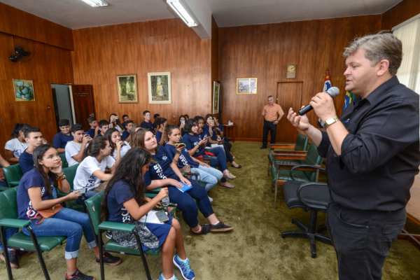 O prefeito de Rio Claro João Teixeira Junior, o Juninho da Padaria, recebeu nesta quarta-feira (4) no paço municipal um grupo de alunos do 8º ano do ensino fundamental da Escola Estadual “Prof. Oscar de Almeida”, localizada no distrito de Assistência. A atividade faz parte do projeto “Conhecendo os Três Poderes” desenvolvido pela professora Mara Pedrazza, na disciplina de História, e apoiado pela escola. A visita ao paço municipal é a primeira etapa do projeto que ainda prevê visitas à Câmara Municipal e ao Fórum.