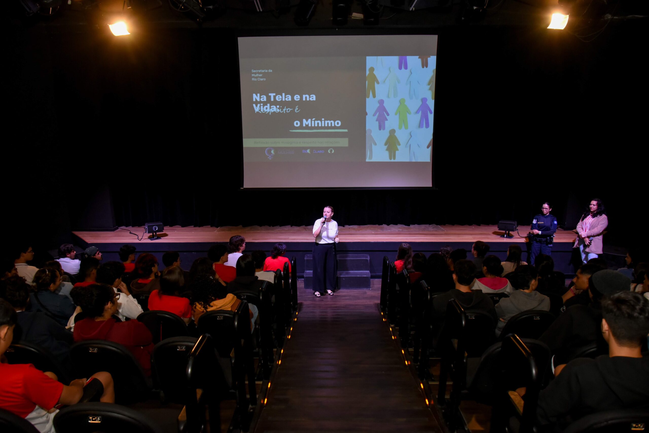 Estudantes rio-clarenses participaram sexta-feira (17), de um debate sobre misoginia. O evento foi realizado no teatro do Sesi, com o tema “Refletir para transformar”.