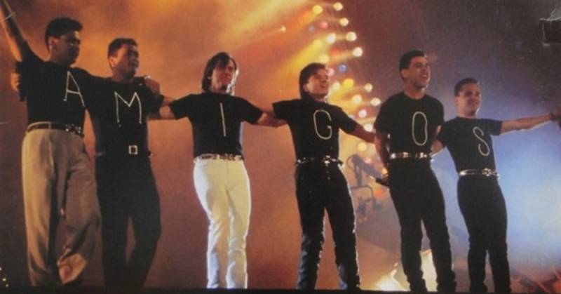“Dezembro de 1995: pela primeira vez, seis grandes amigos se encontram e dividem a mesma emoção. Eles fazem da amizade a força do seu canto”, dizia uma voz em off.