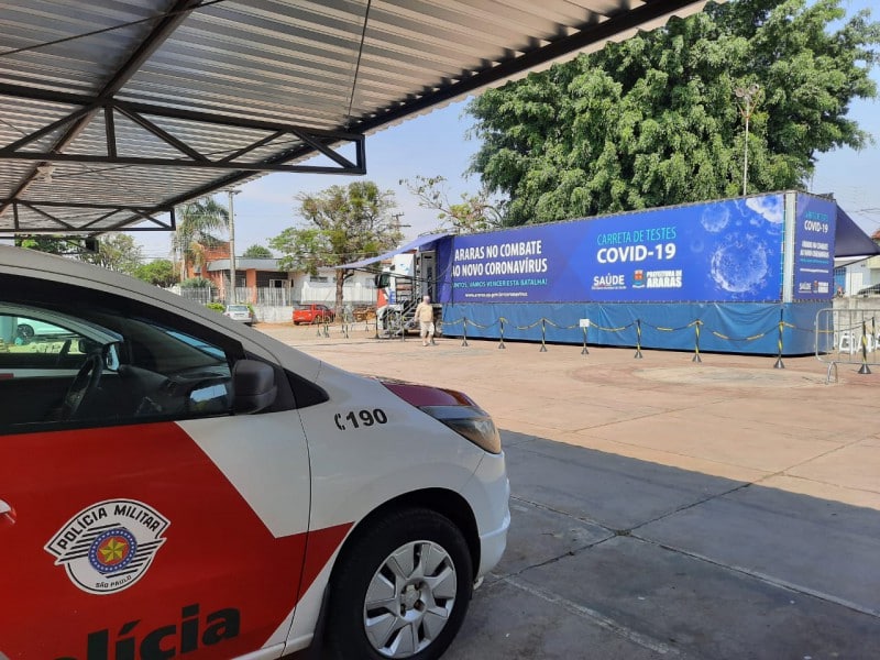 A carreta itinerante contratada pela Prefeitura de Araras, por meio de licitação, para a realização de exames de covid-19 está agora no estacionamento da sede da Polícia Militar, na Vila Dona Rosa Zurita. O serviço de testagem em massa funciona de segunda a sexta-feira, das 8h às 16h, e já aconteceu no Ginásio de Esportes Nelson Rüegger e também no Parque Ecológico.