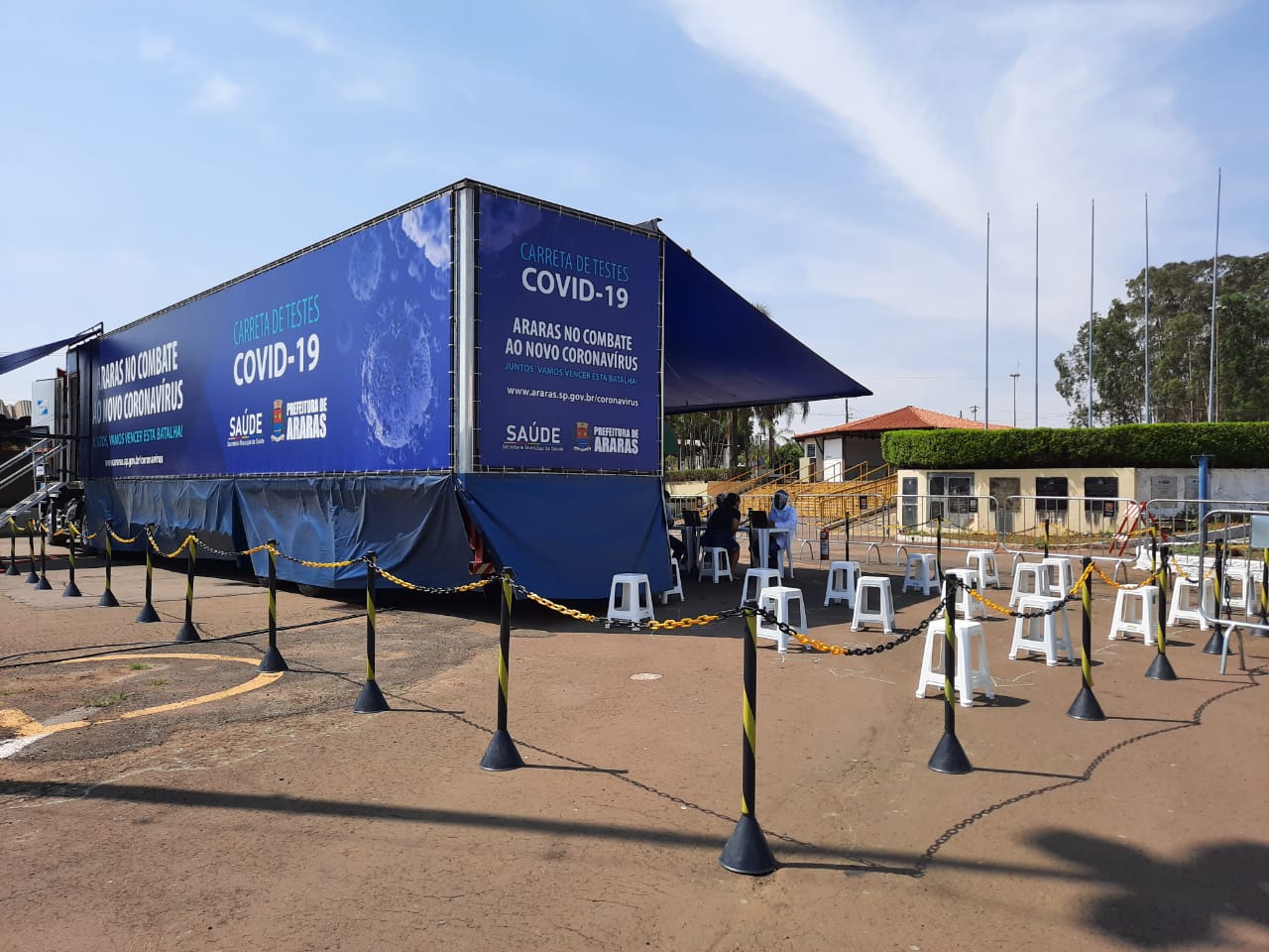 A carreta itinerante contratada pela Prefeitura de Araras para a realização de exames de covid-19 está no recinto do Parque Ecológico desde a manhã desta segunda-feira (28). O serviço de testagem em massa, que funciona de segunda a sexta-feira, começou no último dia 8 em Araras e, até então, vinha acontecendo em frente ao Ginásio de Esporte Nelson Rüegger.