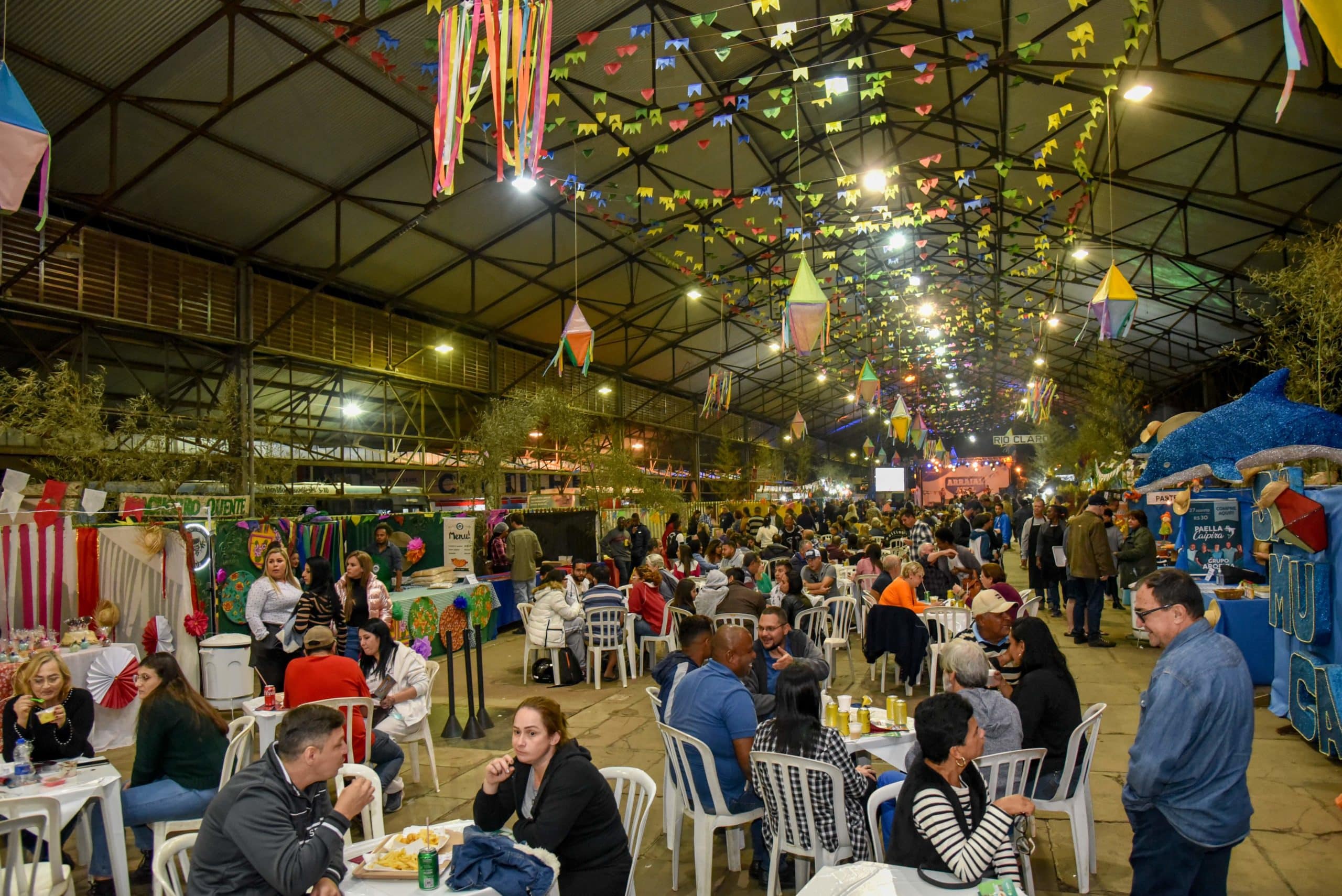 Dezenove entidades assistenciais e beneficentes participaram do Arraial Azul com barracas de comidas e bebidas típicas espalhadas pelo galpão na antiga estação ferroviária.