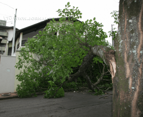 Na rua 3, entre Avenidas 39 e 41, Cidade Jardim, parte de uma árvore caiu, como mostra o vídeo abaixo.