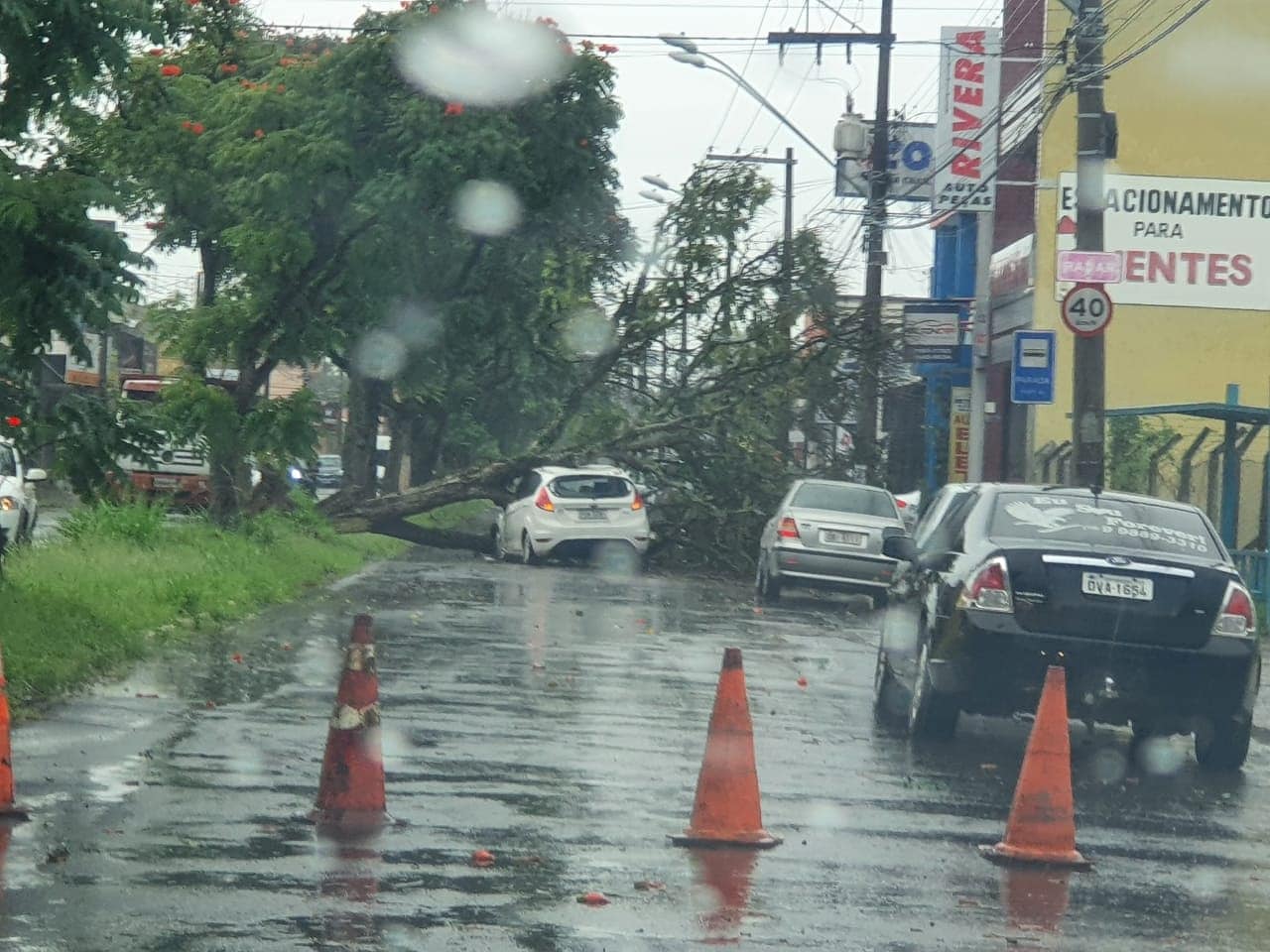 Em Araras, uma árvore caiu em cima de um carro que passava pela Avenida Loreto, no Jardim Florença, no começo da tarde desta quarta-feira (17), durante a forte chuva que atingiu o município.