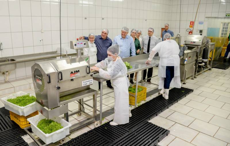 A linha é composta por lavadora, picadeira e centrífuga, que processam os alimentos que poderão ser comercializados a vácuo e não somente in natura. As máquinas lavam, descascam, picam, centrifugam e embalam a vácuo verduras, legumes e frutas. “Esses equipamentos são de grande ajuda para que possamos escoar a produção”, explica a presidente da cooperativa, Andreza Marra.