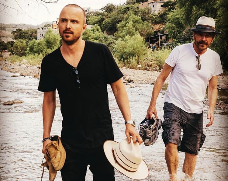 Os fãs de Breaking Bad que seguem os perfis oficiais de Bryan Cranston e Aaron Paul nas redes sociais ficaram intrigados com uma publicação que foi feita nesta terça-feira, 2 Cranston, que interpreta o protagonista Walter White, divulgou uma foto na qual aparece descalço em um rio com o parceiro da trama, o jovem Jesse Pinkman, e o emblemático chapéu.