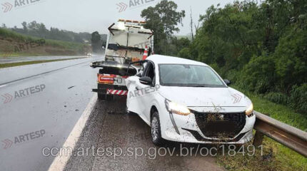 Equipes da concessionária Eixo SP, responsável pela administração do trecho, e o Policiamento Rodoviário foram acionados para atender a ocorrência. Segundo as informações iniciais, o acidente envolveu um veículo de passeio e um caminhão.
