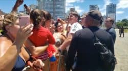 Sem máscara, Bolsonaro provoca aglomeração em praia de SP, abraça banhistas e pega crianças no colo