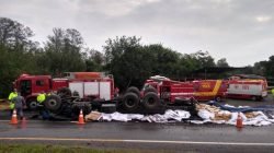 Caminhão tomba no trevo de Batovi e motorista não resiste