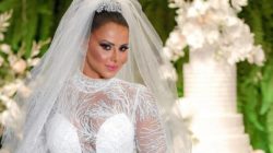 Viviane Araujo se casa com vestido modelo princesa bordado em cristais