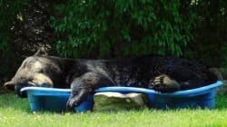 Urso gigante invade quintal de moradora dos EUA e tira cochilo em piscina infantil