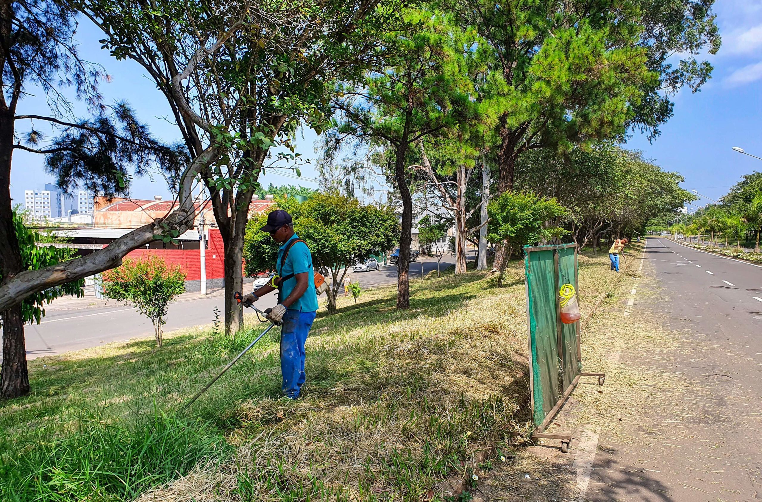Duas das principais vias públicas de Rio Claro estão recebendo serviços de limpeza e corte de mato, realizados pela prefeitura.