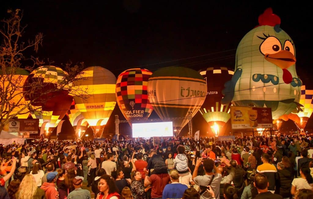 No night glow de sábado e domingo os balões serão acessos no aeroporto municipal.