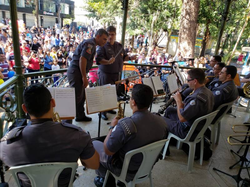 Uma das atrações especiais para comemorar os 192 anos de Rio Claro foi a apresentação a Banda Regimental de Música da Polícia Militar, na manhã desta segunda-feira (24) em frente ao coreto do Jardim Público.
