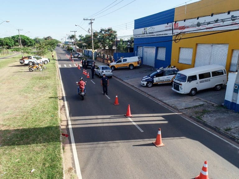 Agentes de trânsito, policiais militares, guardas municipais e membros da Defesa Civil realizaram nesta sexta-feira (2) barreiras sanitárias para orientar e esclarecer a população sobre as restrições na pandemia. “Fizemos orientações a 670 pessoas e 42 pessoas foram qualificadas”, informa Rodrigo Gonçalves, comandante da Guarda Civil Municipal.
