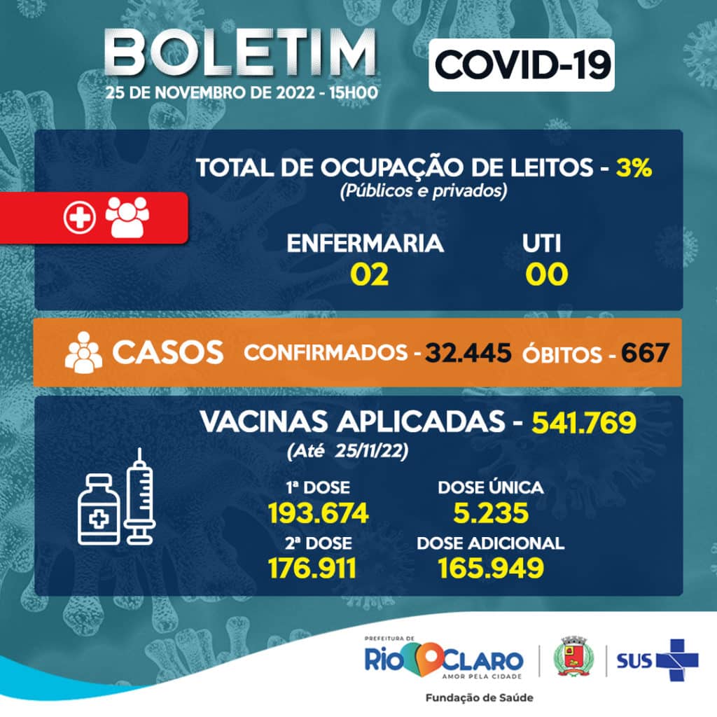Rio Claro registrou nesta semana 73 novos casos de Covid, conforme aponta a Fundação Municipal de Saúde no boletim semanal divulgado nesta sexta-feira (25). O total de casos nesta pandemia é de 32.445.