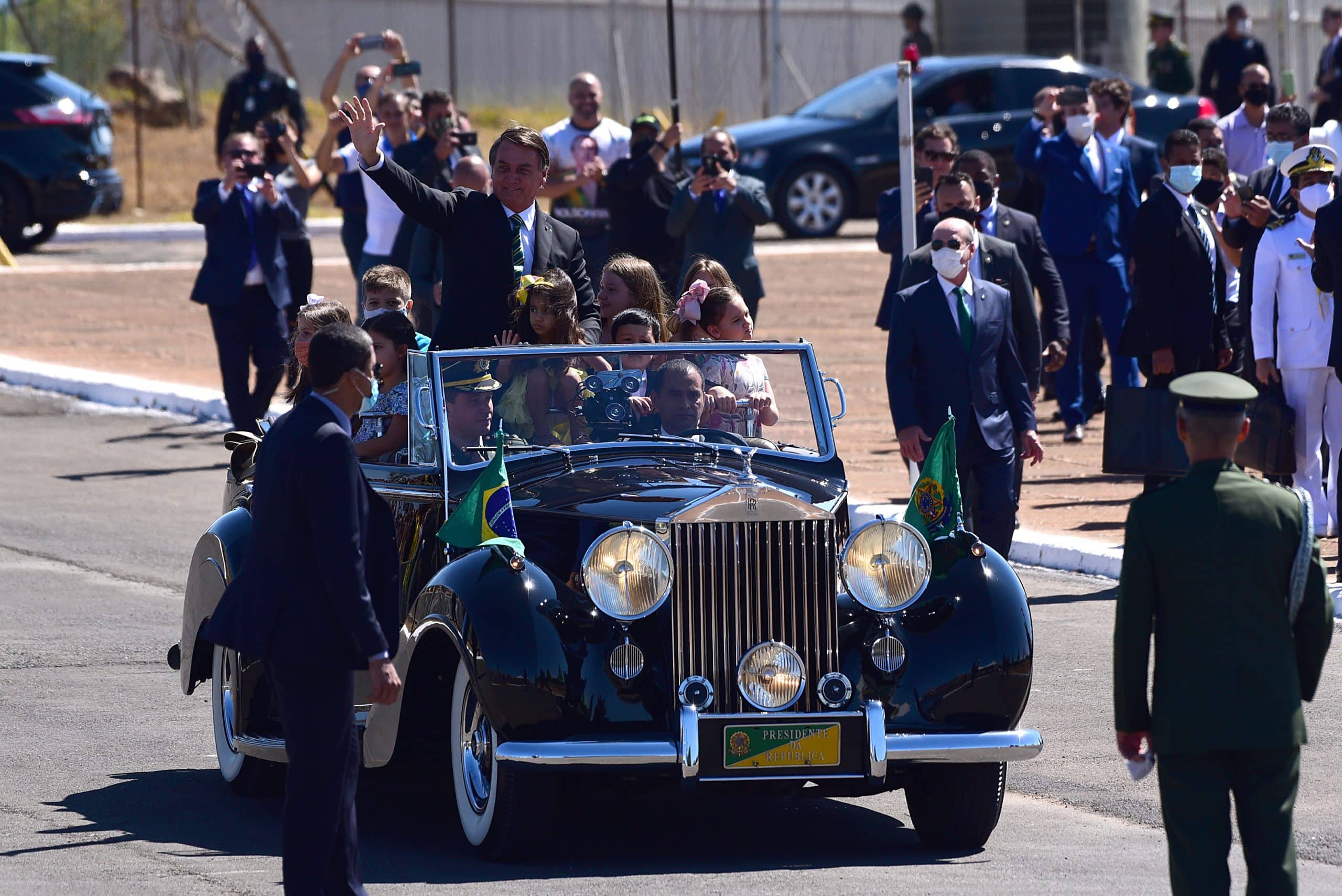 Pouco antes das 10h, Bolsonaro saiu do Palácio da Alvorada no Rolls Royce presidencial acompanhado de um grupo de crianças. Depois de percorrer 400 metros até a Praça das Bandeiras, ele se dirigiu ao alambrado e cumprimentou apoiadores.