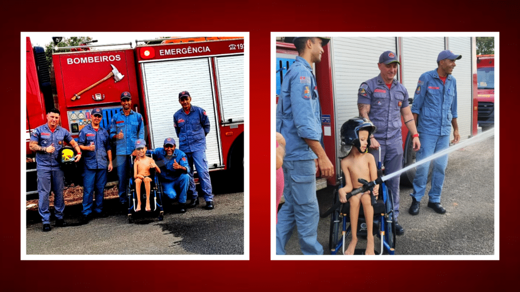 Diante disso, uma surpresa foi preparada para Erick que, ao ser levado até o portão de casa, se deparou com duas viaturas dos Bombeiros (Auto Bomba e Resgate) e com a presença do sargento Bucioli, cabo Accardo, cabo Borges, cabo Maurício e soldado Leonis. Parecendo não acreditar, Erick tratou de cumprimentar e abraçar seus heróis da vida real, que não mediram esforços para fazer o pequeno se sentir em um dia de ação. Ele foi convidado a entrar na viatura Auto Bomba, tirou fotos e depois aprendeu lições de como combater um incêndio.