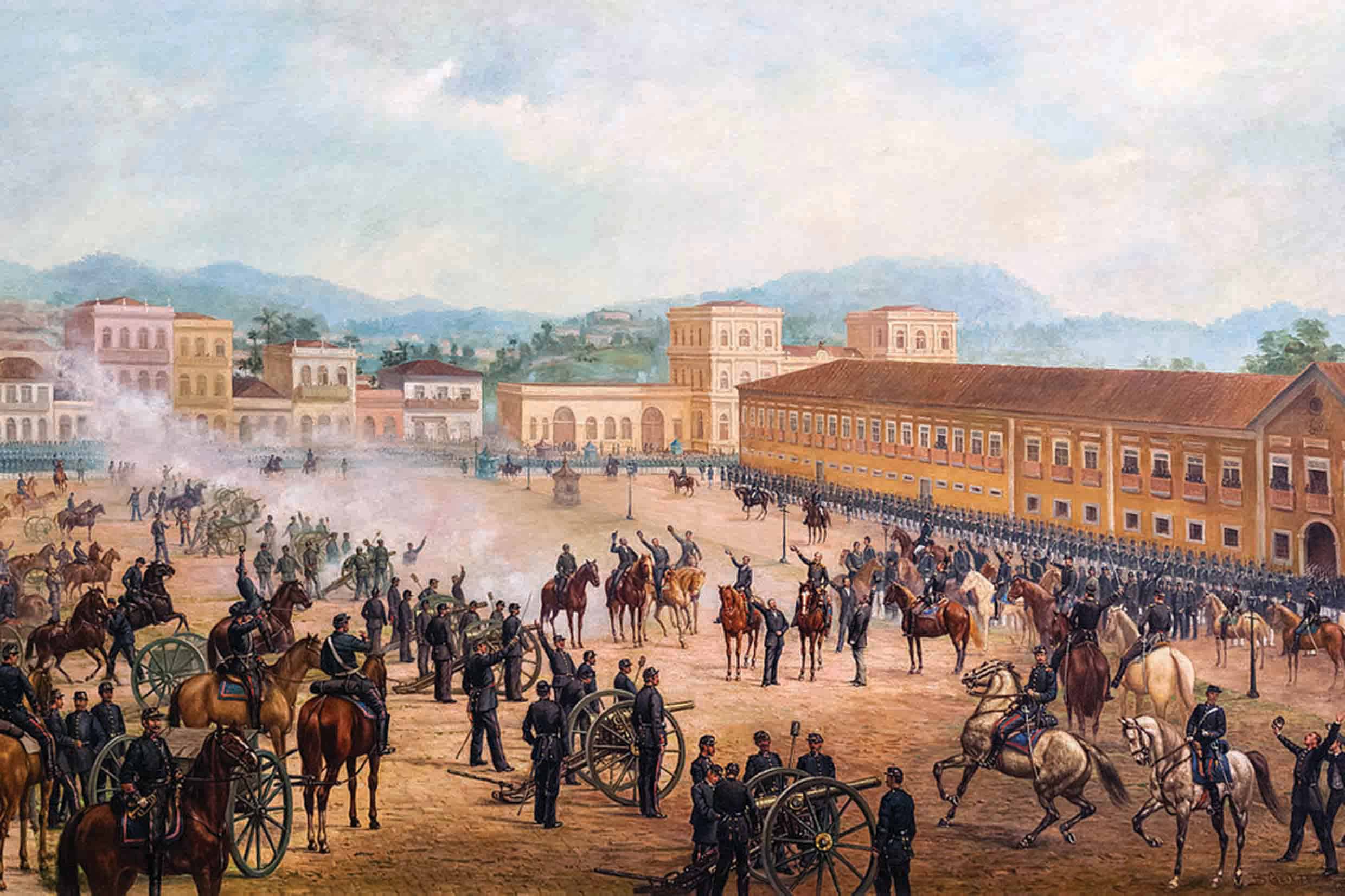 Sobre os militares, o conflito ocorreu após a Guerra do Paraguai (entre 1864 e 1870) e a saída vitoriosa do exército brasileiro. Os militares tentaram expandir suas exigências, mas não foram contemplados pelo imperador. Promulgada em 1888, a Lei Áurea promoveu a abolição da escravatura – e, ao mesmo tempo em que permitiu a modernização do trabalho no Brasil, desagradou os grandes latifundiários. Esses então juntaram-se ao movimento republicano e pediram o fim do Império.
