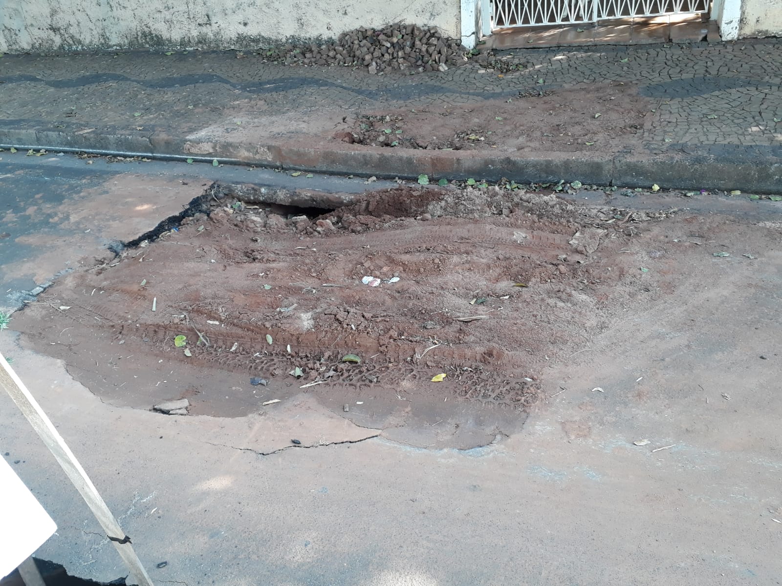 De acordo com Cláudia Christofoletti, que reside defronte ao buraco, a rede de água se rompeu, surgindo um segundo buraco na calçada. “Entramos em contato com o DAAE e no dia seguinte fizeram o reparo, porém disseram que voltariam para arrumar o asfalto e a calçada, fato que não aconteceu”.